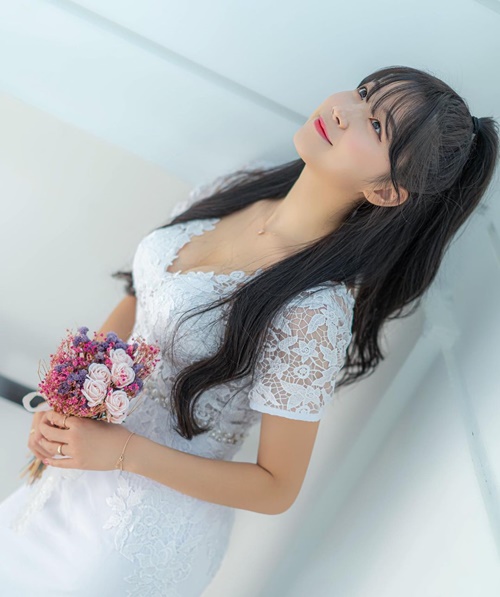 アン・ジヒョンは最近、インスタグラムを更新。ウェディングドレス姿の写真を数枚投稿した。