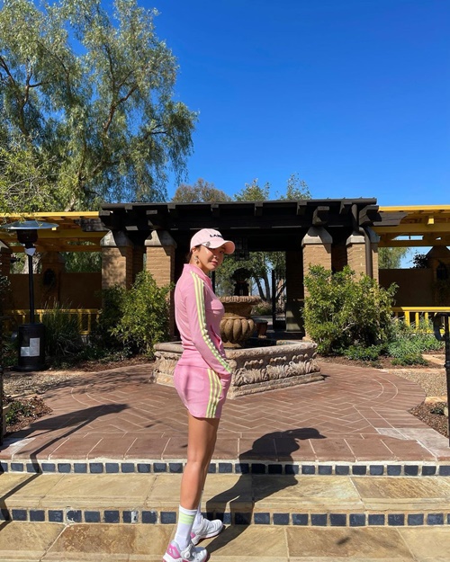 写真に写ったアン・シネは、ピンクを基調としたゴルフウェア姿でカメラに向けてポーズを取っている。タイトなウェアから伝わるボディラインはさることながら、ショートパンツからスラリと伸びた美脚が印象的だ。