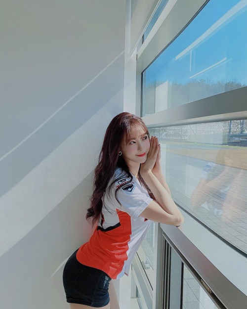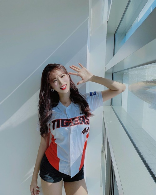 写真を見ると、KIAタイガースのユニホームにホットパンツを合わせたキム・ハンナがカメラに向かってキュートにポーズしている。持ち前のルックスやスラリとしたボディラインが目を引くのはさることながら、スラリと窓から差し込む太陽の光が彼女の魅力を一段と引き出している。