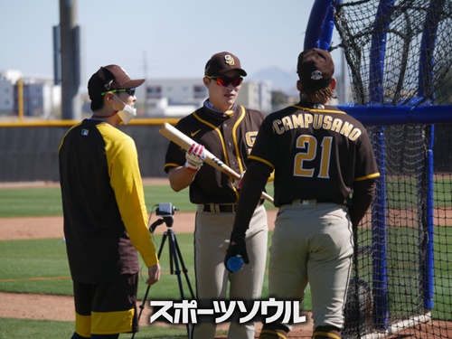 チーム練習3日目、キム・ハソンはクロネンワースや捕手ルイス・キャンプサーノ(22)と同じ組になり、打撃練習を行った。3人はまるで長年の仲間のように、和気あいあいとした雰囲気で盛り上がった。