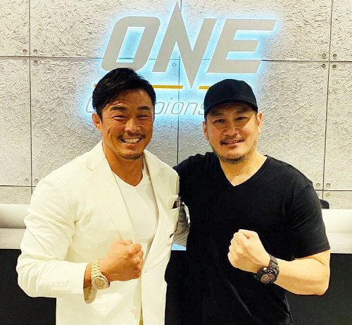 秋山成勲(左)とONEチャンピオンシップのチャトリ・シットヨートン会長