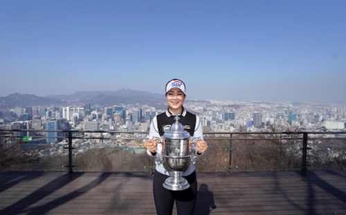 キム・アリムは昨年12月、米テキサス州で行われた「全米女子オープン」で米国女子ツアー初出場ながら優勝を達成した。この日もソウル市内の随所でトロフィーを掲げながら、当時の喜びを思い起こした。
