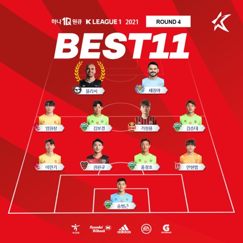 以下、Kリーグ1第4節及びKリーグ2第3節のベストイレブン。