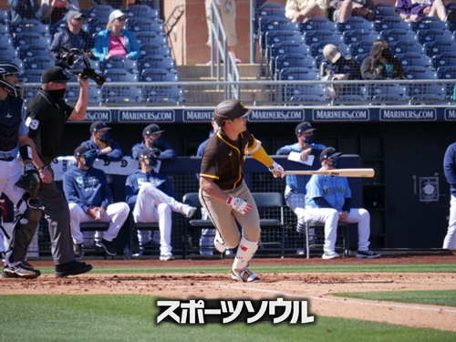 米メジャーリーグ、サンディエゴ・パドレスのキム・ハソンが、アリゾナで連日行われているオープン戦で初打点を記録するも、ラッキーな安打と打点と言われている。