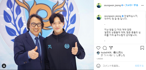 チョン・スンウォンは3月24日、自身のインスタグラムを更新。「この1カ月間、私の契約に関する一連の状況について多くの方にご心配をおかけし、申し訳なく思っている。ピッチ上で渾身の力を込め、良いパフォーマンスですべてを証明したい」と、ファンに謝罪の気持ちを伝えた。