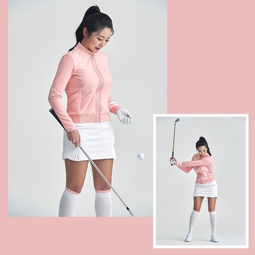 写真を見ると、黒やピンク、紫と色とりどりのゴルフウェアとプリーツスカートを合わせたアン・ソヒョンが、カメラに向かって多彩なポーズを披露している。