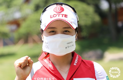 (写真提供=KLPGA)「コロナ克服」と書かれたマスクを着用する昨シーズンのチェ・ヘジン​​​​​