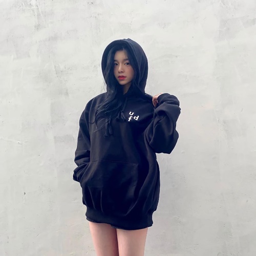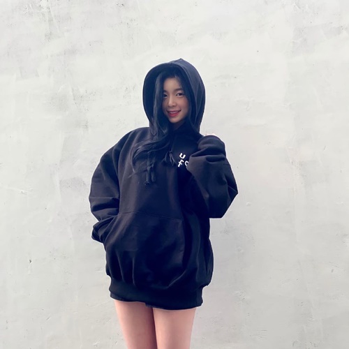 写真を見ると、黒色のフーディーを身にまとったチョ・ヨンジュが何気ない表情でカメラを見つめている。オーバーサイズで着こなす姿にキュートさを感じるのはもちろんのこと、裾からスラリと伸びた美脚が見る者を惹きつけた。