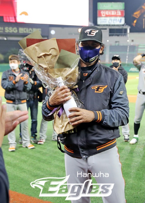 同日の試合には、ハンファ・イーグルス代表取締役のパク・チャンヒョク氏と、チョン・ミンチョルGMがスタジアム訪れた。試合後に両氏は、スベロ監督に花束とシャンパンをプレゼントして初勝利を祝っていた。