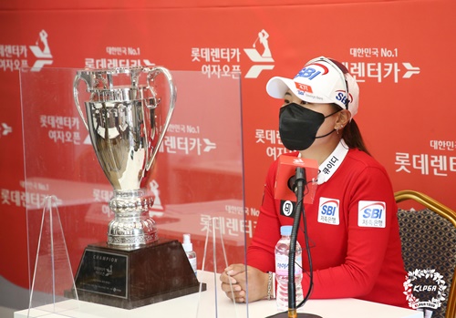 (写真提供=KLPGA)優勝後のインタビューに応じるイ・ソミ
