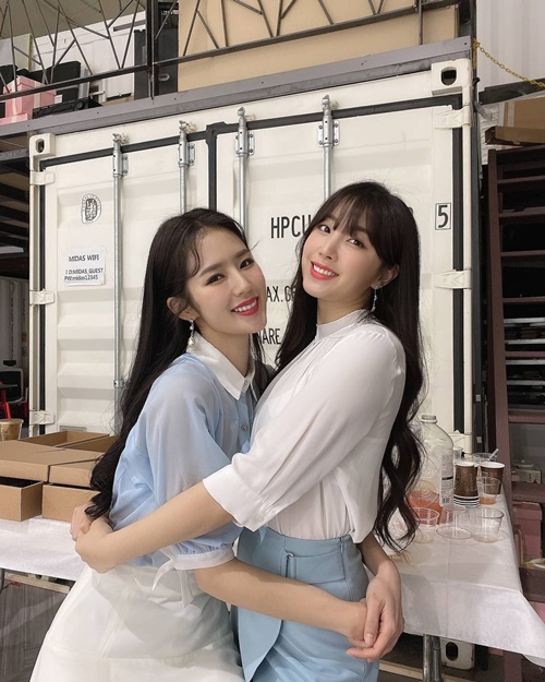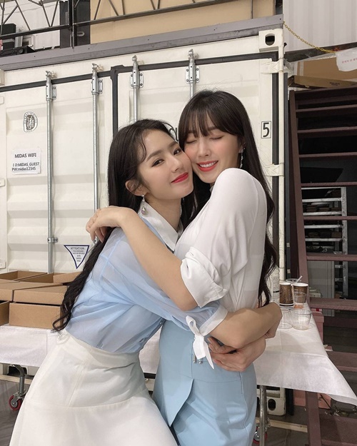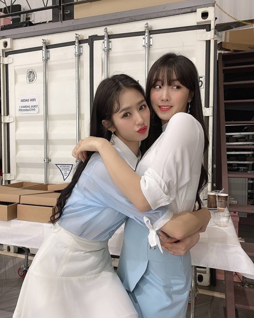 「今年もジヒョンと♡」とキャプションに綴り、ロッテ精密化学の尿素水ブランド『EUROX』の広告撮影にともに参加したアン・ジヒョンとのオフショットを公開した。