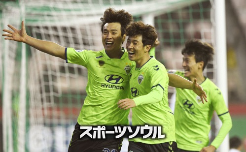 全北は前半14分、ハン・ギョンウォンがペナルティーエリア内で相手DFを引き離し、ゴールを決めて先制。前半終了4分前にこそチャン・シーチョーに同点ゴールを許したが、後半3分にはイ・ドングッが逆転ゴールを決めて再びリードを奪った。