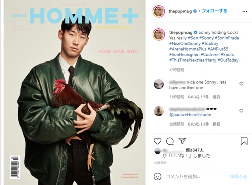 インスタグラム上で公開された表紙カットを見ると、ソン・フンミンはPRADA(プラダ)レザージャケットに身を包み、凛とした表情でカメラを見つめている。自身の所属するトッテナムが雄鶏をシンボルとすることから、鶏を抱えて登場したものと思われる。