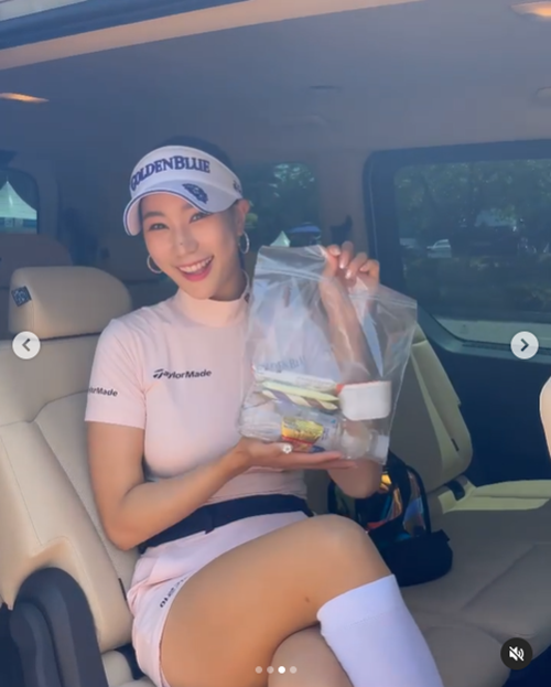 投稿を見ると、ピンク色のタイトなゴルフウェアに身を包んだユ・ヒョンジュが満面の笑顔でポーズを披露している。メリハリあるボディラインはさることながら、ミニスカートから伸びる美脚も見る者の目を引く。