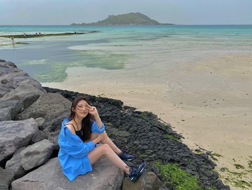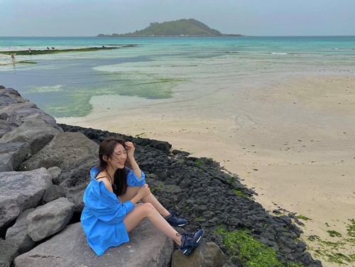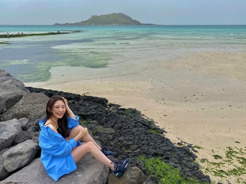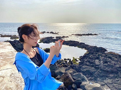 写真に写っているのは、とある海沿いで佇んでいる様子のチェ・ダビン。本業のフィギュアスケートをしているときとは打って変わり、黒色のキャミソールに青色のアウターを羽織ったラフな格好が印象的だ。特に、服の間から覗く整ったデコルテが見る者の目を引いた。