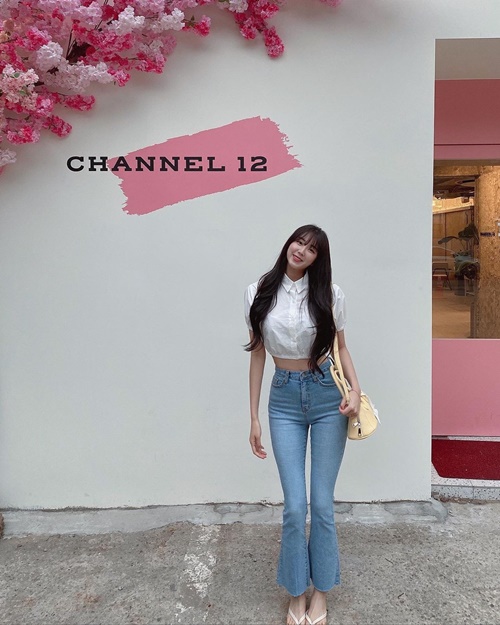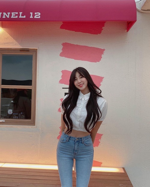 写真を見ると、ショート丈の白シャツに淡色のデニムを合わせたアン・ジヒョンが、カフェでくつろいでいる様子が写っている。注目すべきは服の間から覗く引き締まったウエストで、チアリーダーらしい健康的なボディラインが見る者を魅了した。