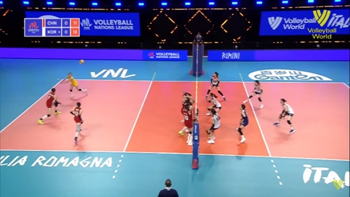 (写真=VNL YouTubeキャプチャー)線審を設けずに行われている中国対韓国