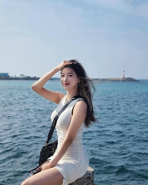 写真を見ると、白色のノースリーブワンピースに身を包んだキム・ハンナの姿が写っている。タイトな衣装から伝わるメリハリあるボディラインが印象的で、見た者の多くを虜にしてみせている。
