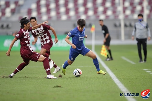(写真提供=韓国プロサッカー連盟)昨季ACLのヴィッセル神戸戦でのイム・サンヒョプ(中央)