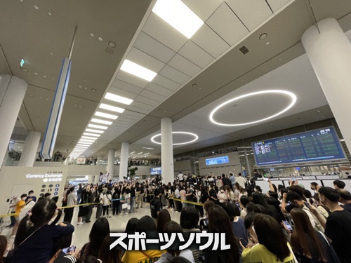 午後9時過ぎ、韓国国旗を持ったキム・ヨンギョンを筆頭に代表選手たちが姿を現すと、天井を突き破るような歓声が入国ロビーに響き渡った。