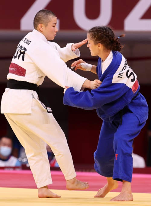 カン・ユジョンは、去る7月24日に日本武道館で行われた東京五輪・柔道女子48キロ級2回戦に坊主頭で登場し、周囲を驚かせた。