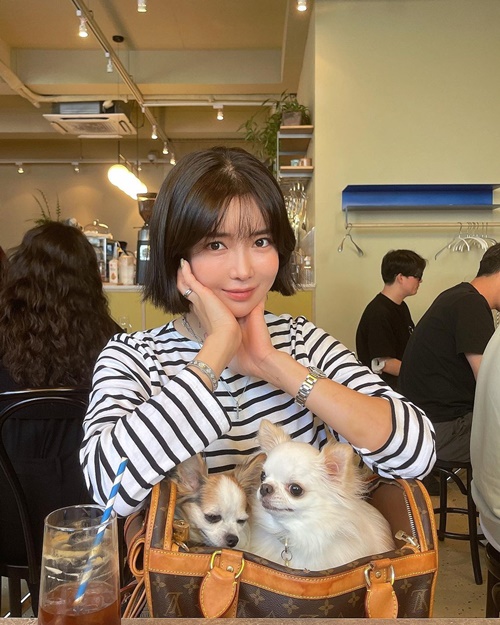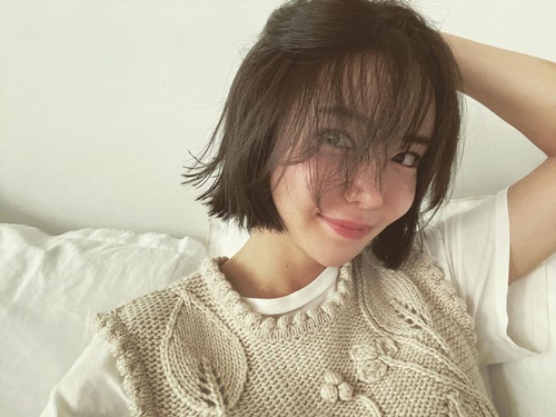 写真を見ると、これまでのロングヘアからばっさりとカットし、ショートヘアになった姿のアン・シネが写っている。
