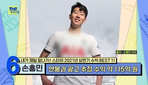 6位にランクインしたソン・フンミンは、上半期だけで約115億ウォン(約11億5000万円)の収益を上げていた。