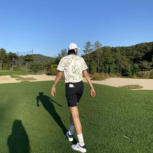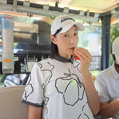 写真を見ると、束の間の休日にゴルフを楽しむキム・ヨンギョンの姿が写っている。普段のバレーユニと違うゴルフウェア姿が新鮮なのはもちろんのこと、ハーフパンツからスラリと長く伸びた脚が見た者の目を引いた。