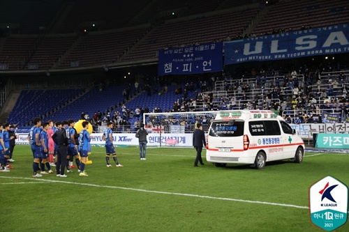 その後、蔚山現代のホームゲーム担当者や広報チーム長らが素早く場内医療陣とコミュニケーションを取り、救急車に乗ってS席に直行。救急救命士が倒れたサポーターに応急処置を施し、すぐに近くの病院へと搬送した。病院には蔚山現代の職員も同行した。