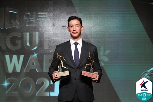 12月7日、ソウルのスイスグランドホテルで行われた「HANA 1Q(ハナワンキュー)Kリーグ1 2021大賞授賞式」で、全北現代(チョンブク・ヒョンデ)モータースのキャプテンのDFホン・ジョンホ(32)が最優秀選手賞(MVP)を受賞した。