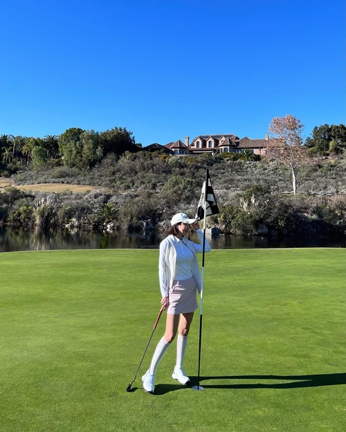 写真を見ると、雲一つない青空広がるゴルフ場のグリーンでポーズを決めるアン・シネの姿が写っている。タイトなウェアから伝わるメリハリあるスタイルはさることながら、ミニスカートから伸びる美脚がファンを虜にした。