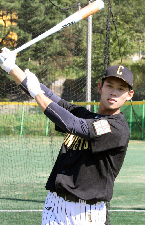 身長190センチ、体重91キロの体格を誇るチョ・ウォンビンは、パワーはもちろん外野守備にも定評がある。高校時代の通算成績は5本塁打、30盗塁、打率0.362、OPS(長打率+出塁率)1.073だった。