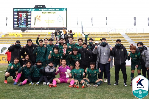 Kリーグ2(2部)では、昨季までK3リーグ(セミプロ、3部相当)所属で2部11チーム目で参入した丸岡満(26)所属の金浦(キムポ)FCが、昨季1部最下位で降格した光州(クァンジュ)FCを2-1で破り、プロ参入後初の試合で歴史的な初勝利を飾った。