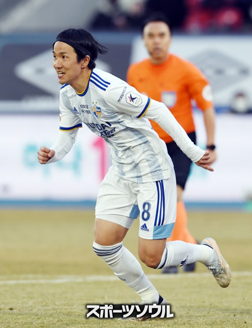 天野の得点が生まれたのは後半開始早々。後半1分、左サイドバックのDFソル・ヨンウ(22)が上げたクロスに反応すると、天野がこぼれ球を左足でボレーシュート。ボールはクロスバーに当たりゴールに吸い込まれ、Kリーグでの自身初得点とともに、蔚山現代の今季初得点となった。