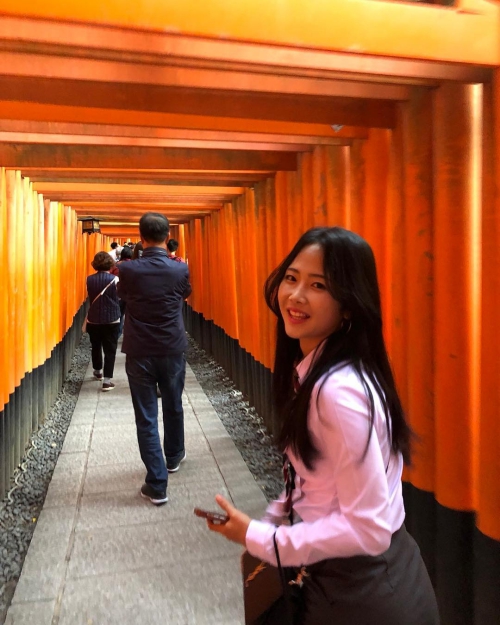 公開された写真には、制服を着て京都を満喫するイ・ミナの姿が写っている。