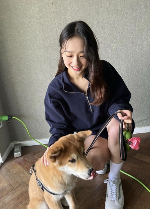 ソン・ヨンジェはカジュアルな服装でも美しく可愛い。さらに子犬を見つめる眼差しもやさしく、明るい笑顔を見せながら自然な姿を見せて好印象だ。