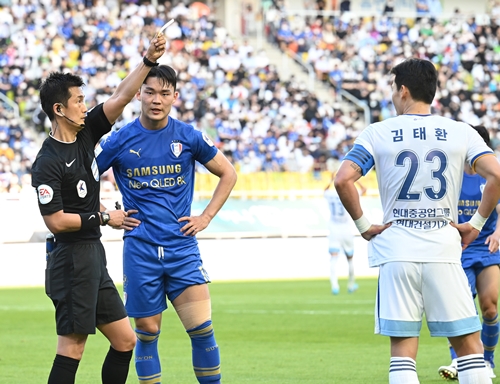 蔚山の韓国代表DFのキム・テファン(32)が、交代で入った水原のFWオ・ヒョンギュ(21)を阻止する過程で、両選手の腕がもつれた。オ・ヒョンギュは強く腕を振り切ると、キム・テファンはピッチに倒れた。