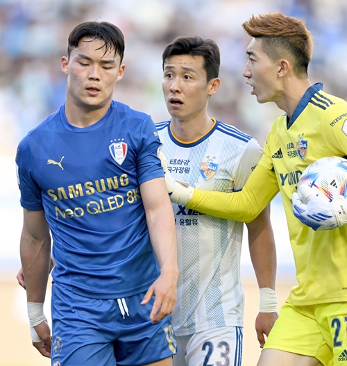 この一連のプレーで怒ったキム・テファンは、胸でオ・ヒョンギュを押して抗議。蔚山のGKチョ・ヒョヌも介入し、オ・ヒョンギュを押していた。