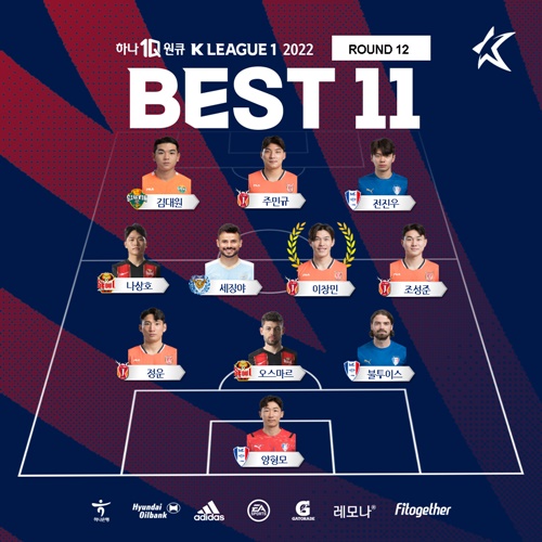 5月17日、Kリーグを管轄する韓国プロサッカー連盟は、14~15日に行われたKリーグ1(1部)第12節、Kリーグ2(2部)第15節のMVP、ベストイレブン、ベストチーム、ベストマッチを発表。