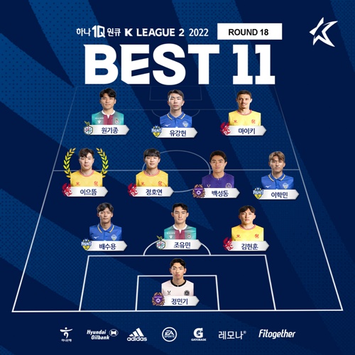 (写真提供=韓国プロサッカー連盟)Kリーグ2第18節ベストイレブン