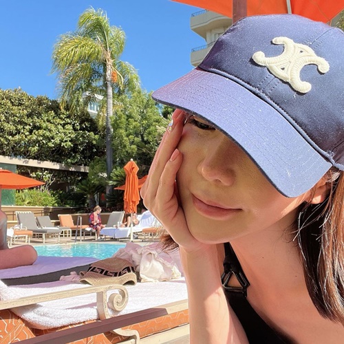 写真を見ると、米ビバリーヒルズのホテルにあるプールサイドでくつろぐ様子のアン・シネが写っている。ワンショルダーのトップスからは華奢な肩のラインがあらわになり、至福のひと時を過ごすセレブ感漂う雰囲気で見る者を魅了した。