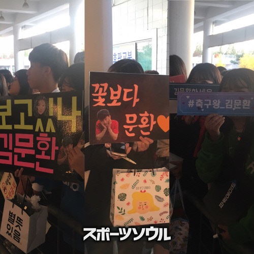 釜山をはじめ全国各地からファンが競技場を訪れた。彼らはキム・ムンファンがボールを取るたびに声を上げて、試合を楽しんだ。試合後はファン・インボムと同じく、多く女性ファンがバスの前でキム・ムンファンを待った。その数があまりにも多く、警備員10人が緊張した面持ちで安全に気を使わなければならないほどだった。まるでコンサート会場を彷彿させる歓声だ。