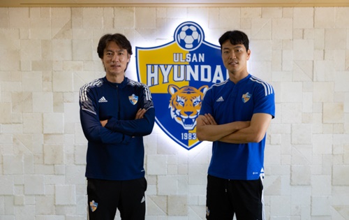 (写真提供=蔚山現代)ホン・ミョンボ監督(左)、キム・ヨングォン