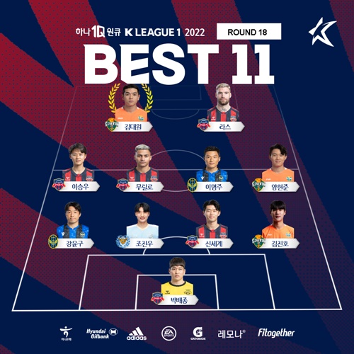 (写真提供=韓国プロサッカー連盟)Kリーグ1第18節ベストイレブン