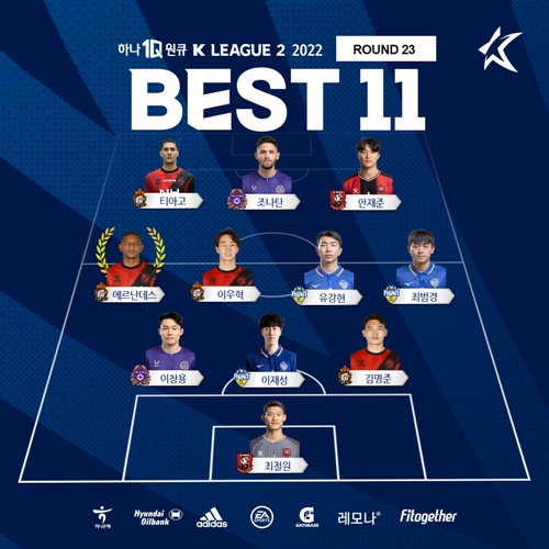 (写真提供=韓国プロサッカー連盟)Kリーグ2第23節ベストイレブン