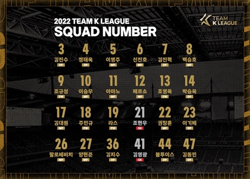 DFでは、キム・ジンスが3番、チョン・テウクが4番、キム・ジンヒョクが7番、パク・スンウクが14番、イ・キジェが23番、キム・ジスが36番、ブルタイスが44番、キム・ドンミンが47番と決まった。