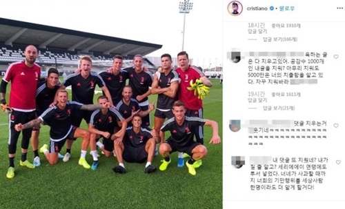 つまり、ロナウドが韓国サッカーファンが書き込んだ非難コメントを削除しているということだ。英語ではなく韓国語で書かれたコメントにもかかわらず、ロナウドはコメントが自分に向けた非難であることに気づいた。
