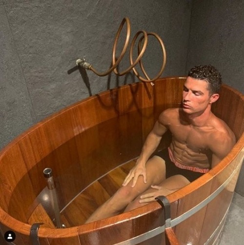 公開された写真でロナウドは、正しい姿勢で座りながら湯につかっている。目を閉じて瞑想にふけるような表情が目を引く。