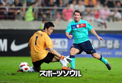 2度目の対戦は同年8月4日、韓国・ソウルで行われたKリーグ・オールスター対バルセロナの親善試合で、メッシが途中出場から2得点を挙げるなどし、バルセロナが5-2で勝利した。当時はチョン・ソンリョンが25歳、メッシが23歳だった。