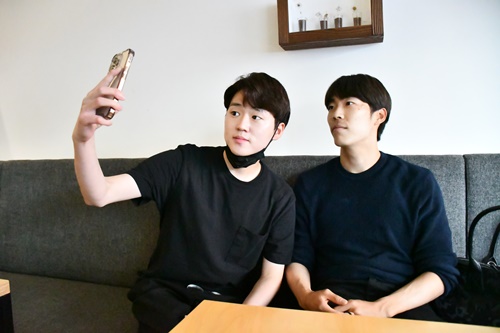 (写真=姜亨起/ピッチコミュニケーションズ)インタビュー途中、ファンとの記念撮影に応じる石田雅俊